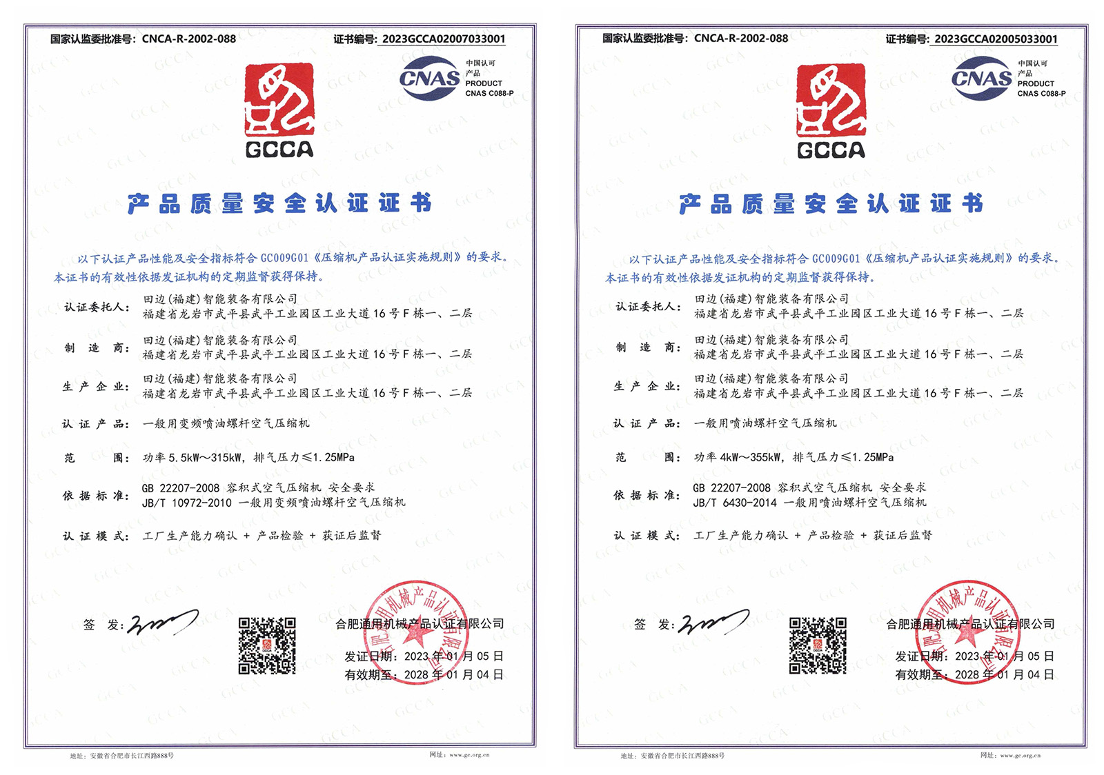 (变频GCCA证书)                     (工频GCCA证书)