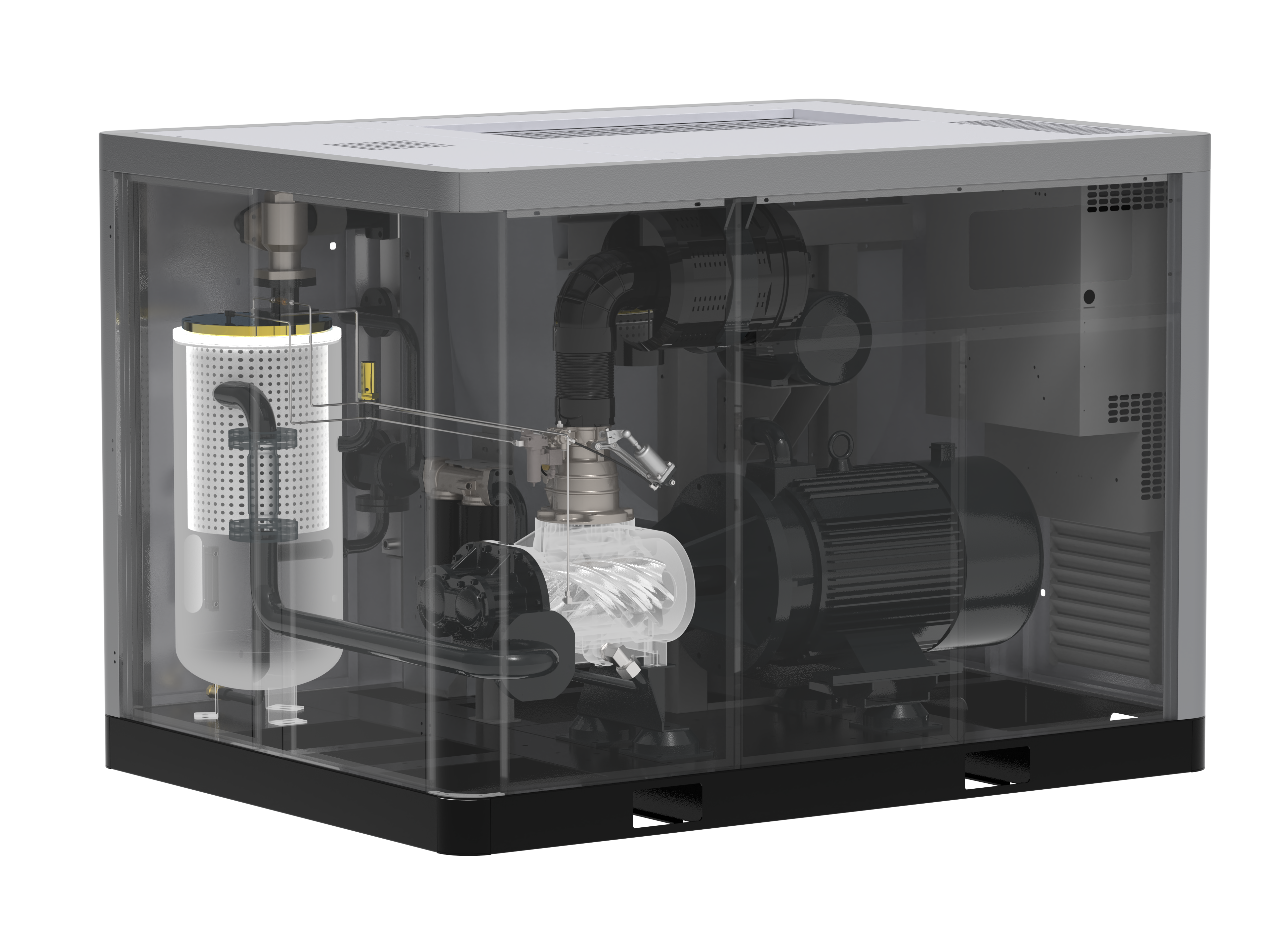 永磁变频空压机的螺杆主机和电机共用同一根主轴,不需要皮带、联轴器,传动效率99%。电机无轴承,消除电机轴承故障点,较为耐用,少维护。