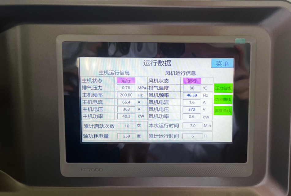 数据采集系统用于实时监控和记录空压机的性能参数,如排气压力、排气温度、运行电流电压频率和功率等。