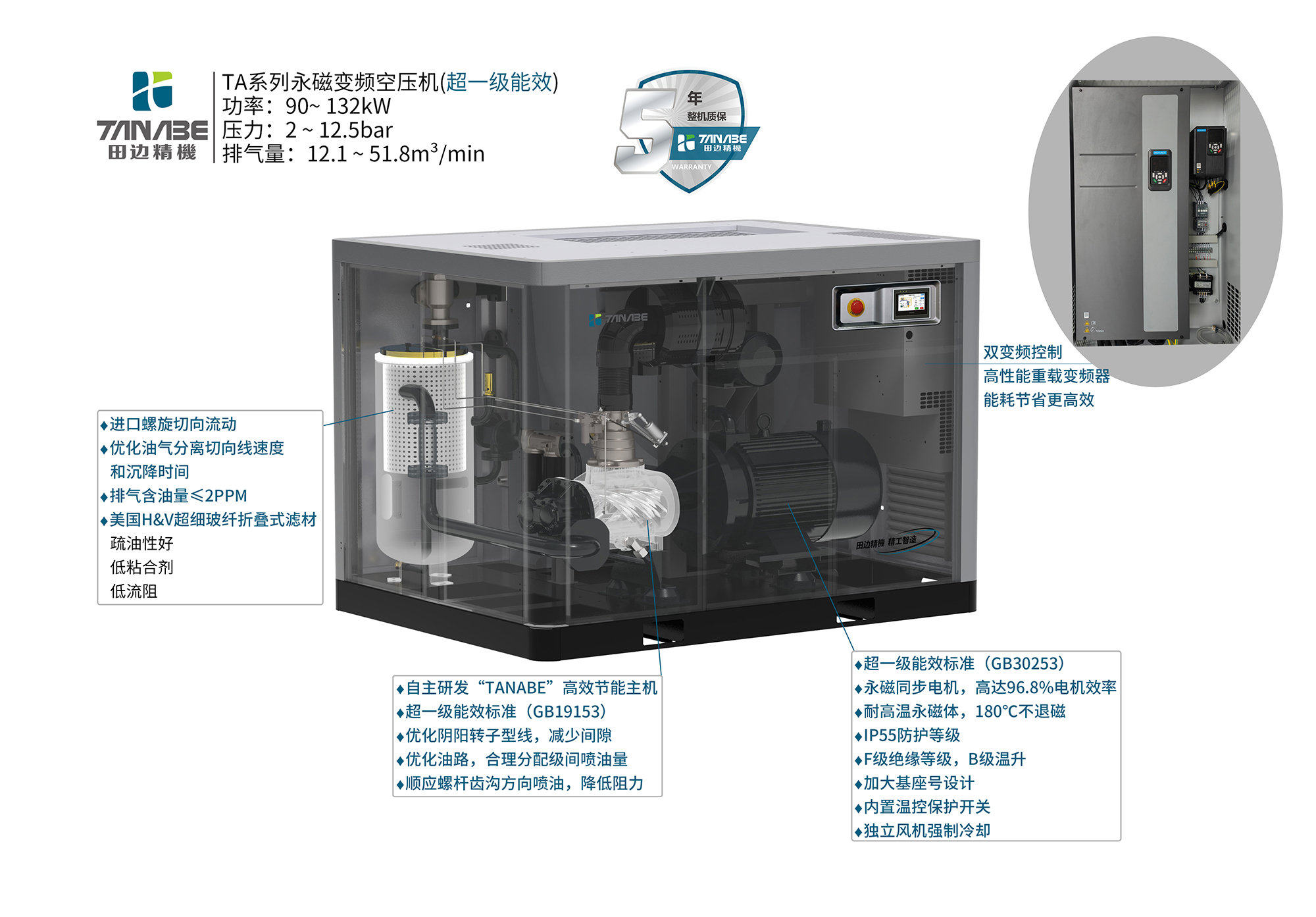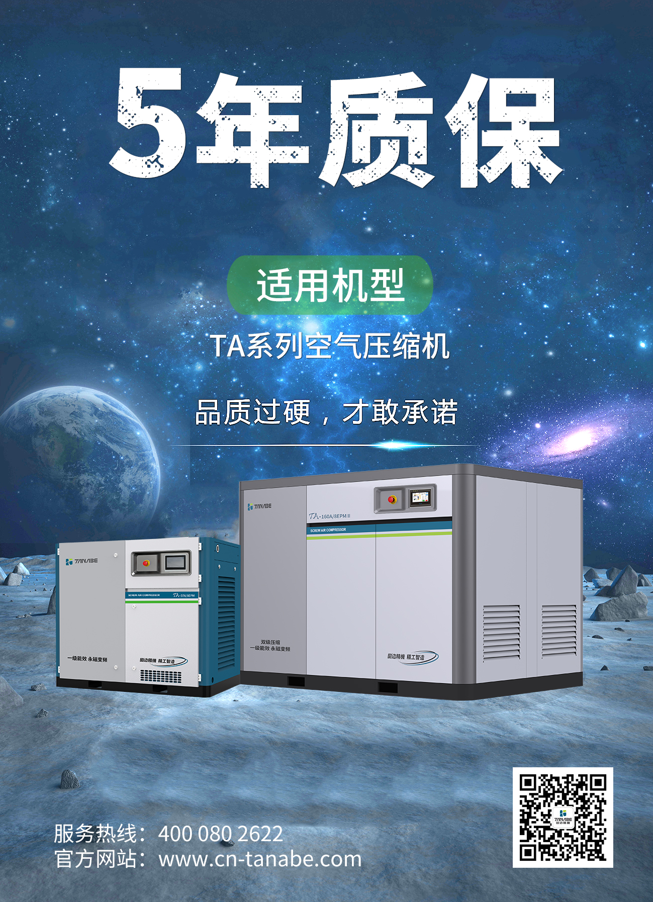 开云官方官网登录入口TA全系列空气压缩机推出5年整机质保服务。