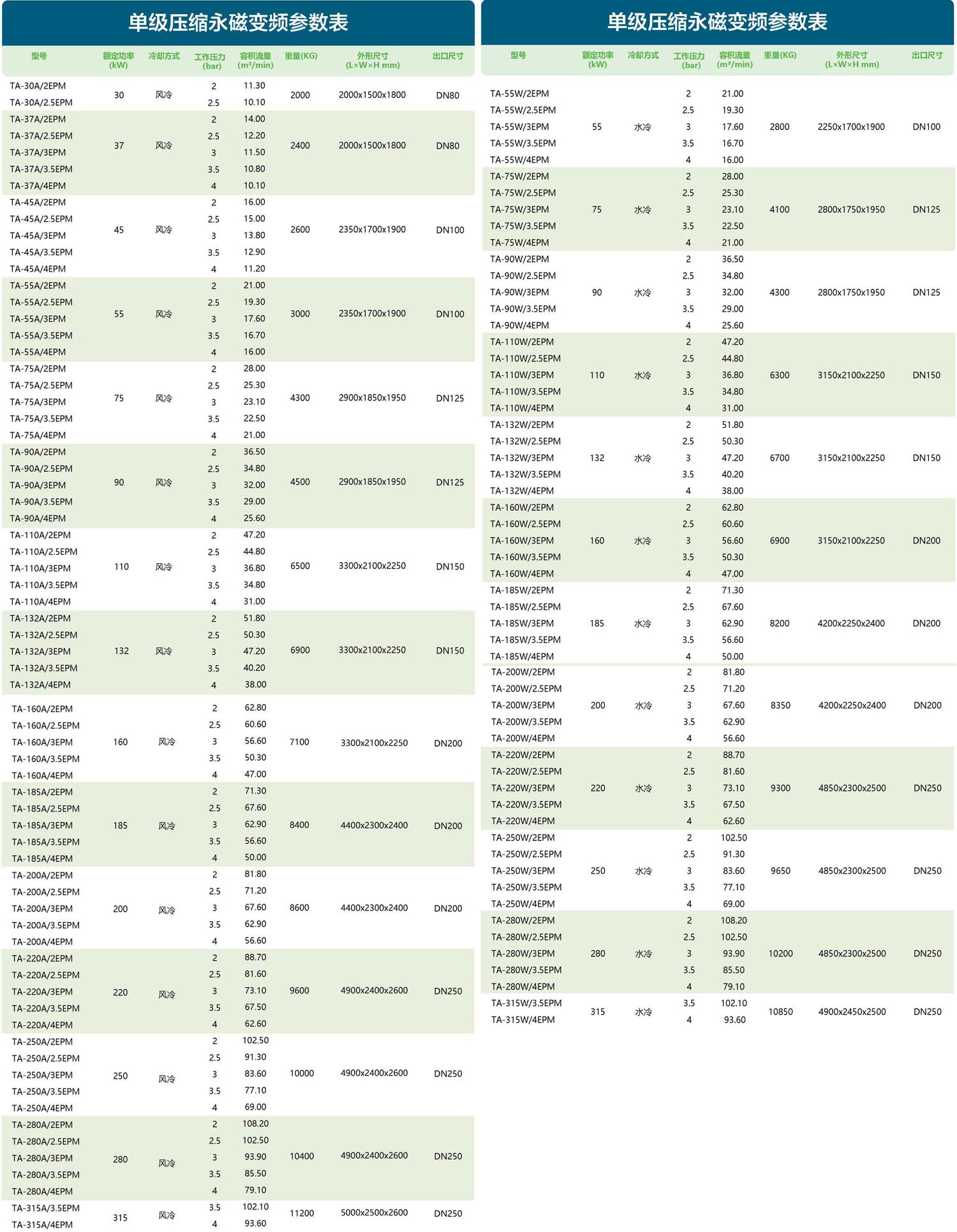 TA低压 永磁螺杆空压机 30~450kW